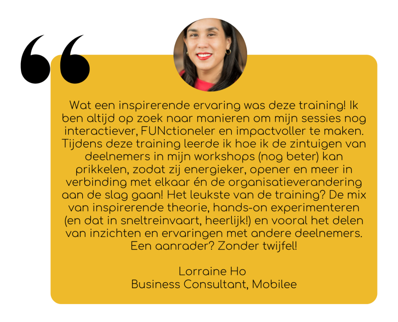 Deze training is waardevol voor iedereen die betrokken is bij sessies en hierin graag een creatieve, anders-dan-anders aanpak toepast. Uitermate geschikt dus voor facilitators, managers, projectleider en vergadering-voorzitters.